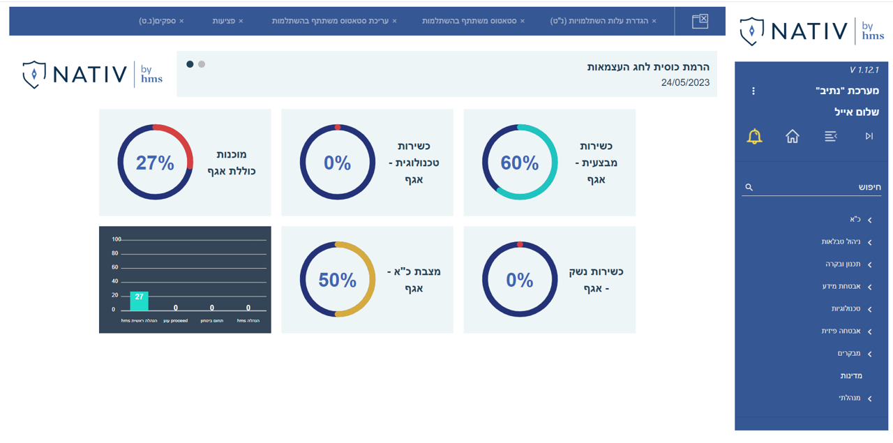 BI Dashboard המאפשר תמונת מצב מלאה של התחומים השונים ואגף הביטחון כולו בזמן אמת.
